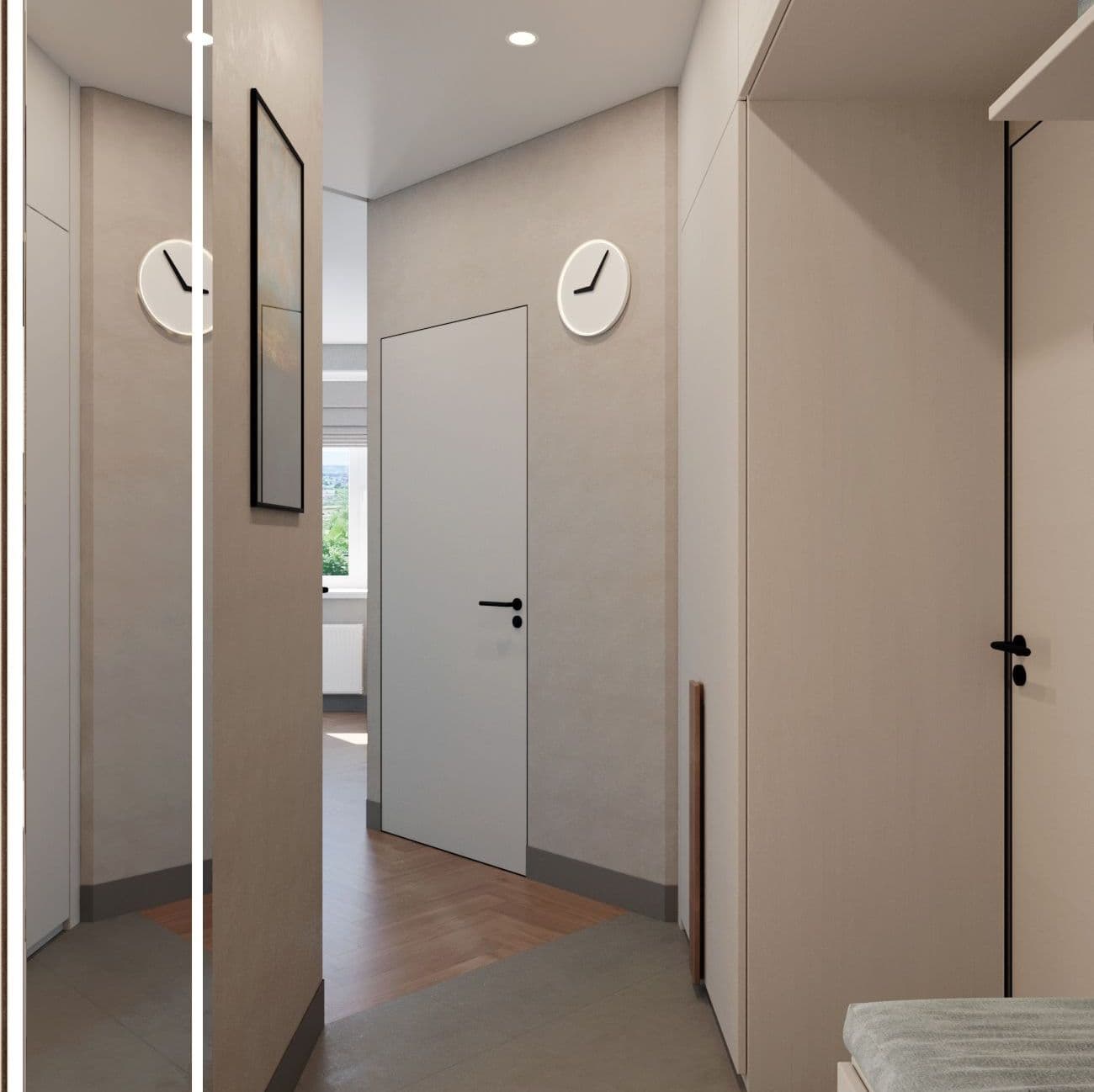 Когда места мало, стараемся сделать побольше скрытых элементов. Скрытые двери, скрытое хранение, и конечно же, светлые оттенки в отделке.